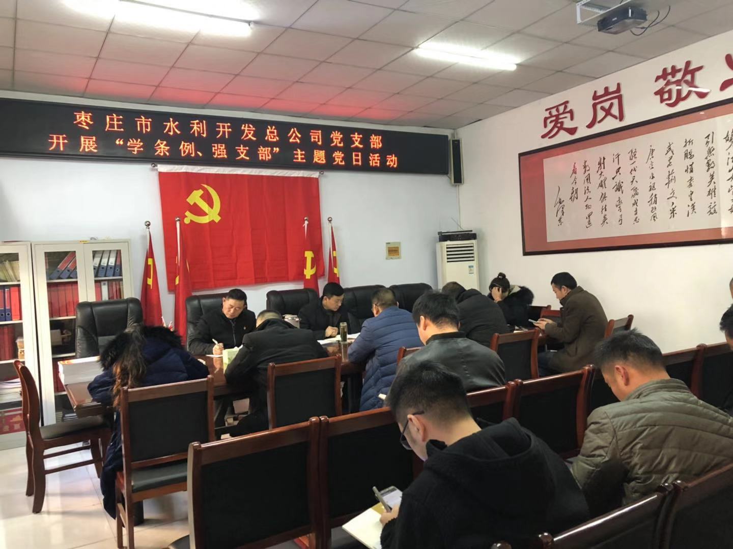 12月28日下午,棗莊市水利開(kāi)發(fā)總公司開(kāi)展“學(xué)條例、強(qiáng)支部”主題黨日活動(dòng),集中學(xué)習(xí)新修訂的《中國(guó)共產(chǎn)黨支部工作條例(試行)》。