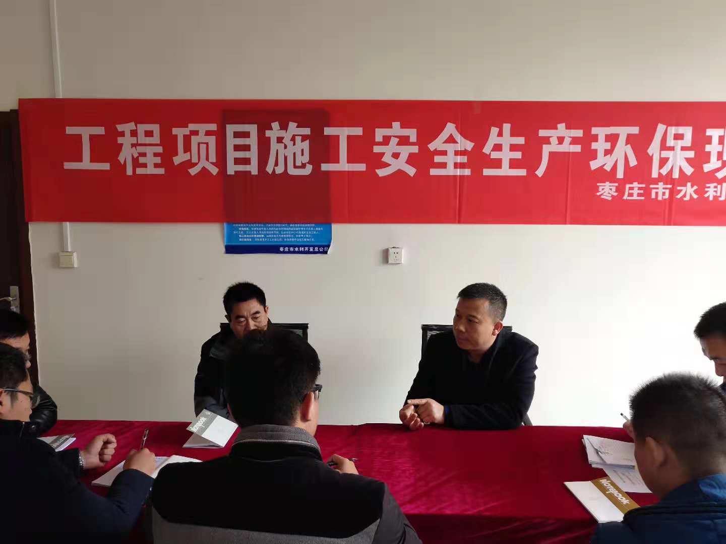 2018年12月7日上午,棗莊市水利開發(fā)總公司副總經(jīng)理高明同志帶領(lǐng)安全環(huán)保部一行到薛城區(qū)沙溝鎮(zhèn)薛城區(qū)淮河流域平原老洼地治理南四湖片區(qū)進(jìn)行現(xiàn)場安全督查部署,并邀請監(jiān)理部李季及監(jiān)理人員、項(xiàng)目部全體到項(xiàng)目經(jīng)理部參加項(xiàng)目施工安全生產(chǎn)環(huán)?,F(xiàn)場會(huì)議。
