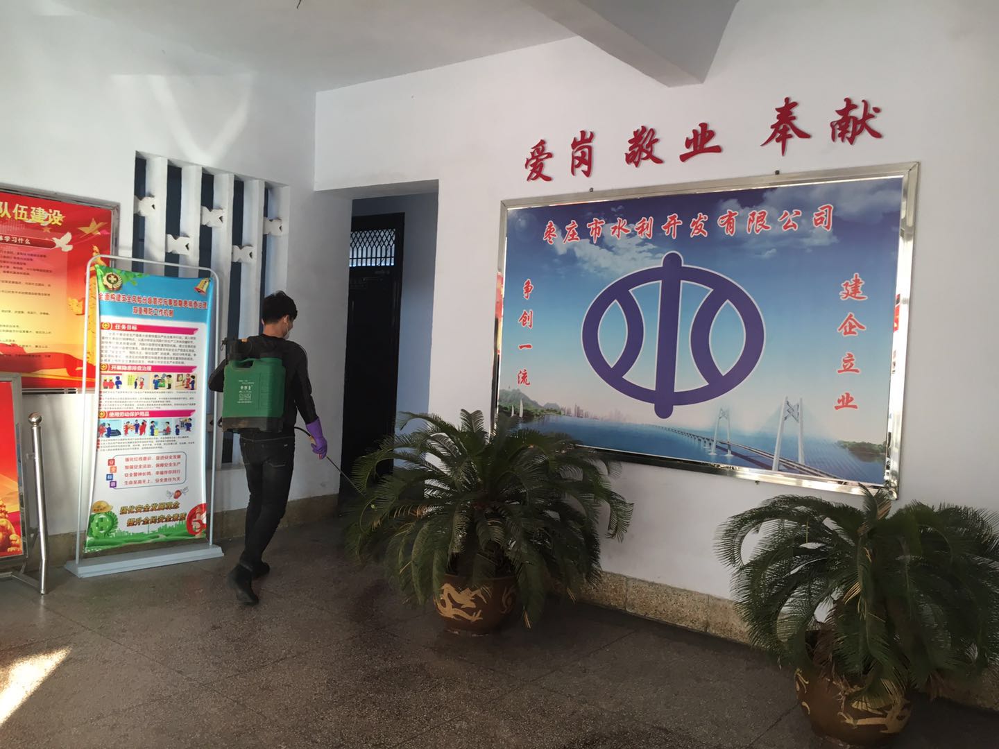 為進一步做好新型冠狀病毒感染的肺炎疫情綜合防控,遏制疫情擴散和蔓延,2020年2月10日上午,棗莊市水利開發(fā)有限公司切實做好復(fù)工階段疫情防控工作,由副總經(jīng)理鄭濟營、副總經(jīng)理連永等同志帶領(lǐng)相關(guān)人員進行了復(fù)工后工作場所全方位衛(wèi)生消毒和檢查防疫工作。
