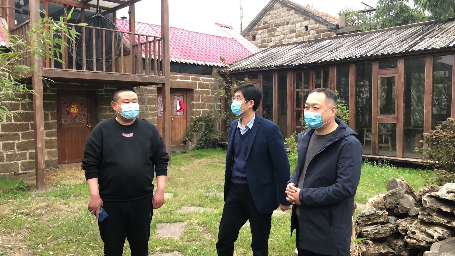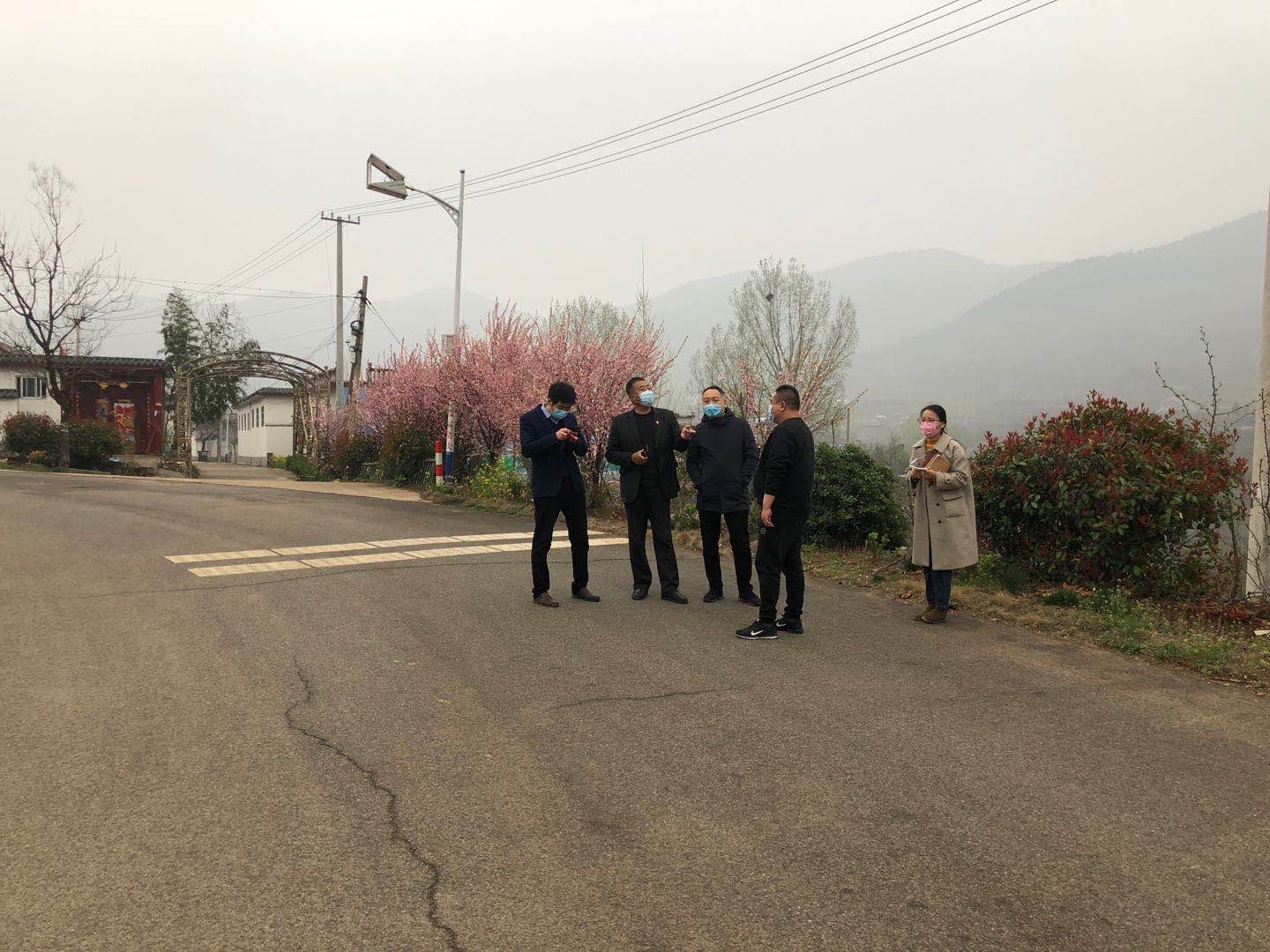 圖為:山亭區(qū)北莊鎮(zhèn)人民政府領(lǐng)導(dǎo)與棗莊市水利開發(fā)有限公司副總經(jīng)理連永、棗莊市水利勘測設(shè)計院周明主任踏勘傳統(tǒng)村落項目現(xiàn)場