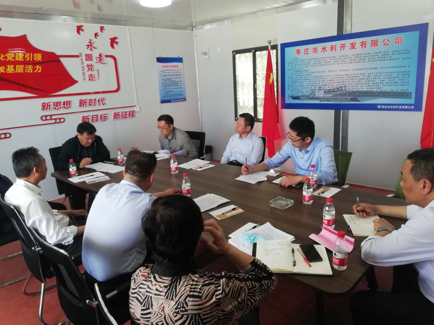 王祖利副廳長一行在工地現(xiàn)場查看了工程進(jìn)度,質(zhì)量和安全生產(chǎn)情況,并在項目會議室組織召開座談會,聽取了工程進(jìn)展情況匯報,對我公司施工管理到位、施工質(zhì)量、安全生產(chǎn)、施工進(jìn)度情況及汛前完成工程建設(shè)的施工計劃給予了高度贊賞和評價。同時強(qiáng)調(diào),汛期將至,建設(shè)任務(wù)十分緊迫,要搶抓晴好天氣,進(jìn)一步采取措施,優(yōu)化施工方案,細(xì)化防控工作措施,在抓好施工質(zhì)量和安全的前提下,倒排工期、掛圖作戰(zhàn),做到保安全、控質(zhì)量、促進(jìn)度三者有機(jī)結(jié)合,科學(xué)組織施工,切實加快工程進(jìn)度,力爭工程及早建成、發(fā)揮應(yīng)有作用。